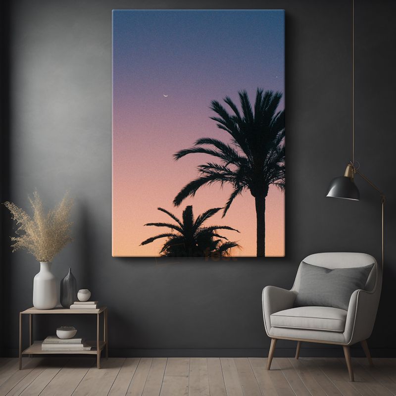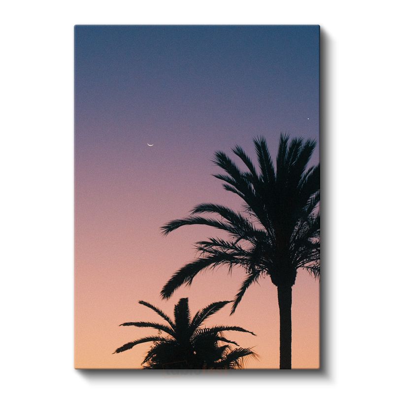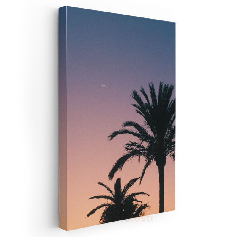 Tropikal Gün Batımı - Palmiye Silüetleri ve Alacakaranlık Gökyüzü Kanvas Tablo