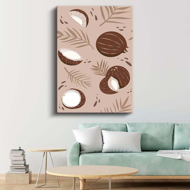 Tropikal Harmoni - Hindistan Cevizi ve Yapraklar Kanvas Tablo