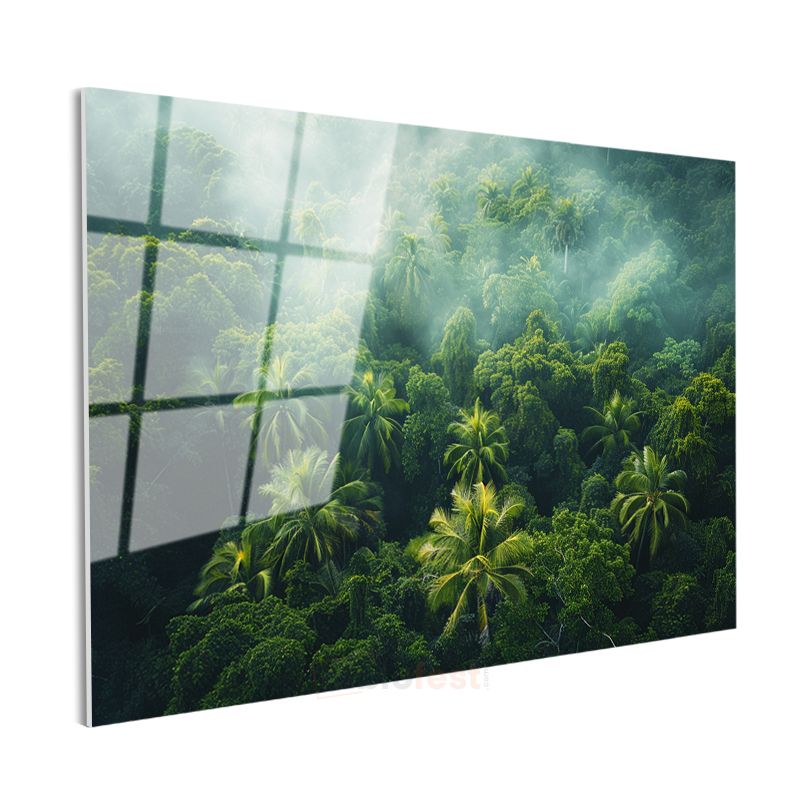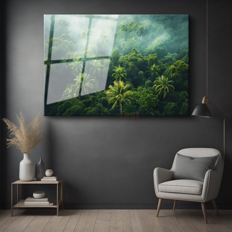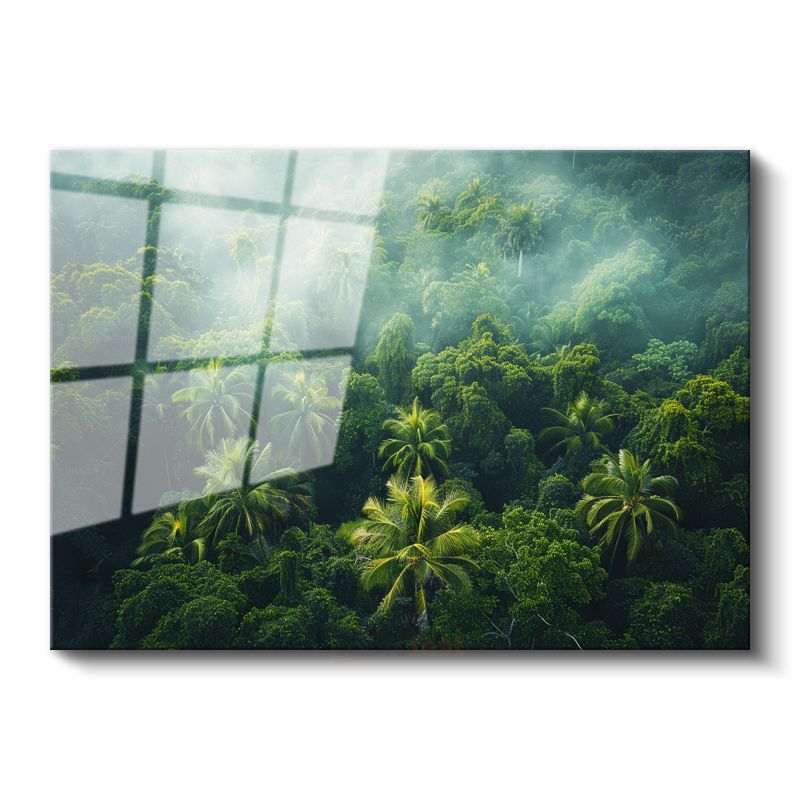 Tropikal Orman - Sisler Arasında Yeşilin Binbir Tonu Cam Tablo