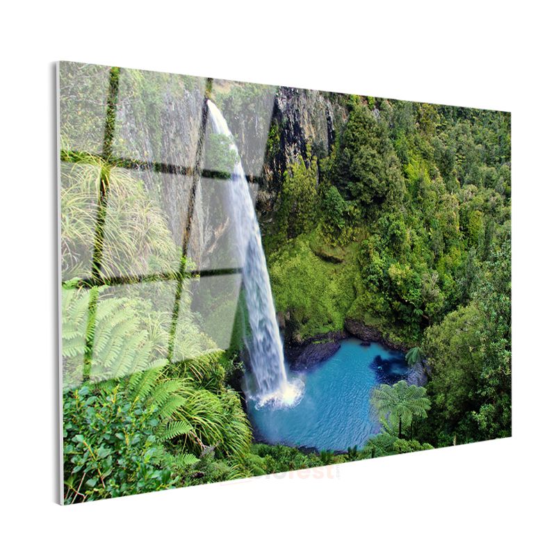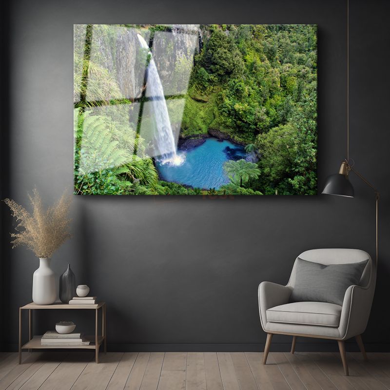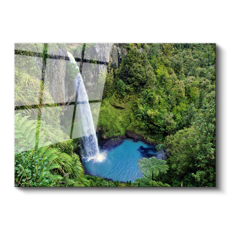 Tropikal Şelale - Turkuaz Havuzlu Yağmur Ormanı Cam Tablo