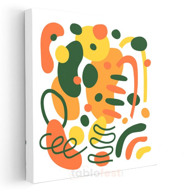 Tropikal Soyut Kompozisyon - Canlı Yeşil Turuncu Sarı Organik Formlar Kanvas Tablo