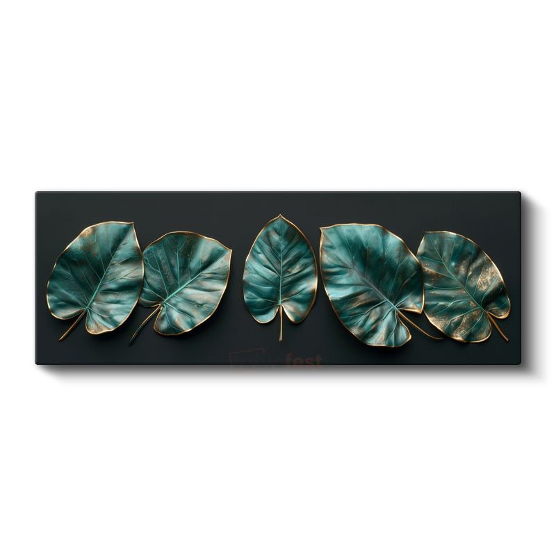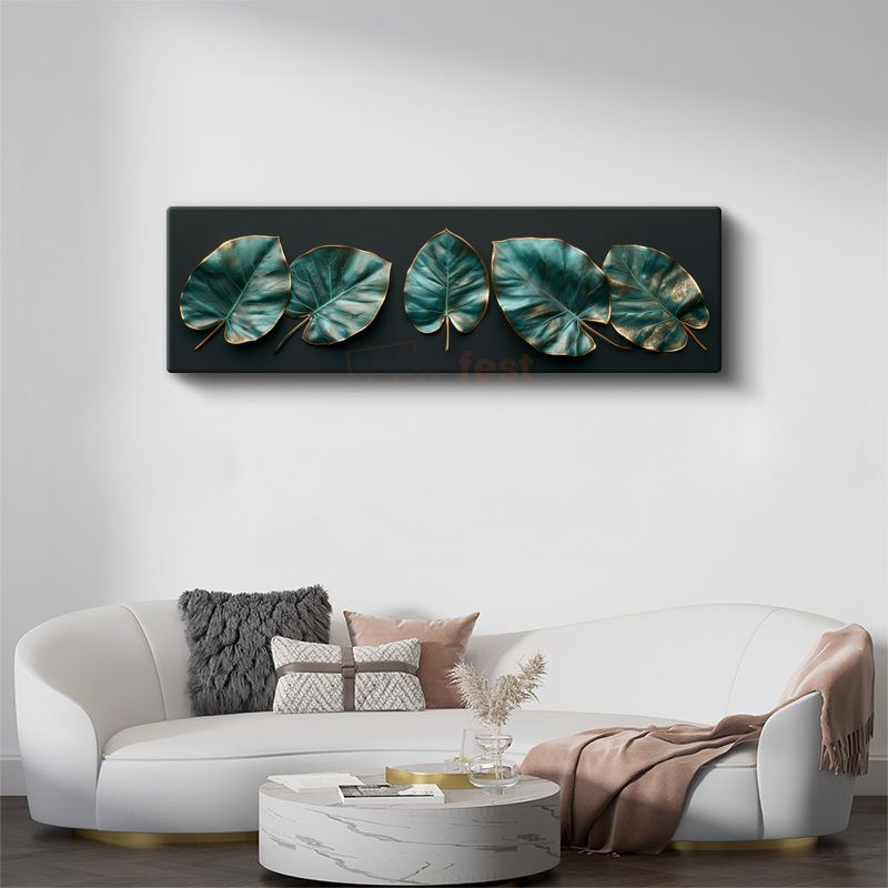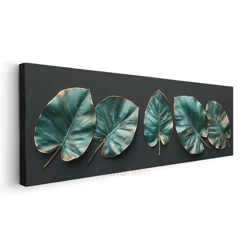 Tropikal Yapraklar - Altın Kenarlı Zümrüt Yeşili Monstera Yaprakları Kanvas Tablo