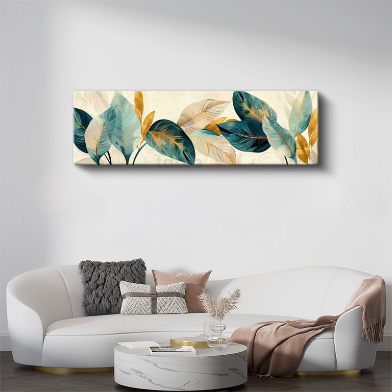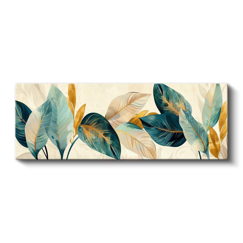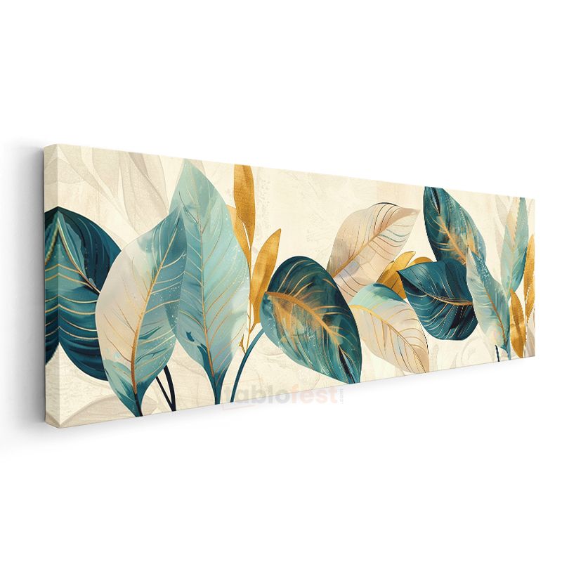 Tropikal Yapraklar - Turkuaz ve Altın Detaylı Modern Tasarım Kanvas Tablo
