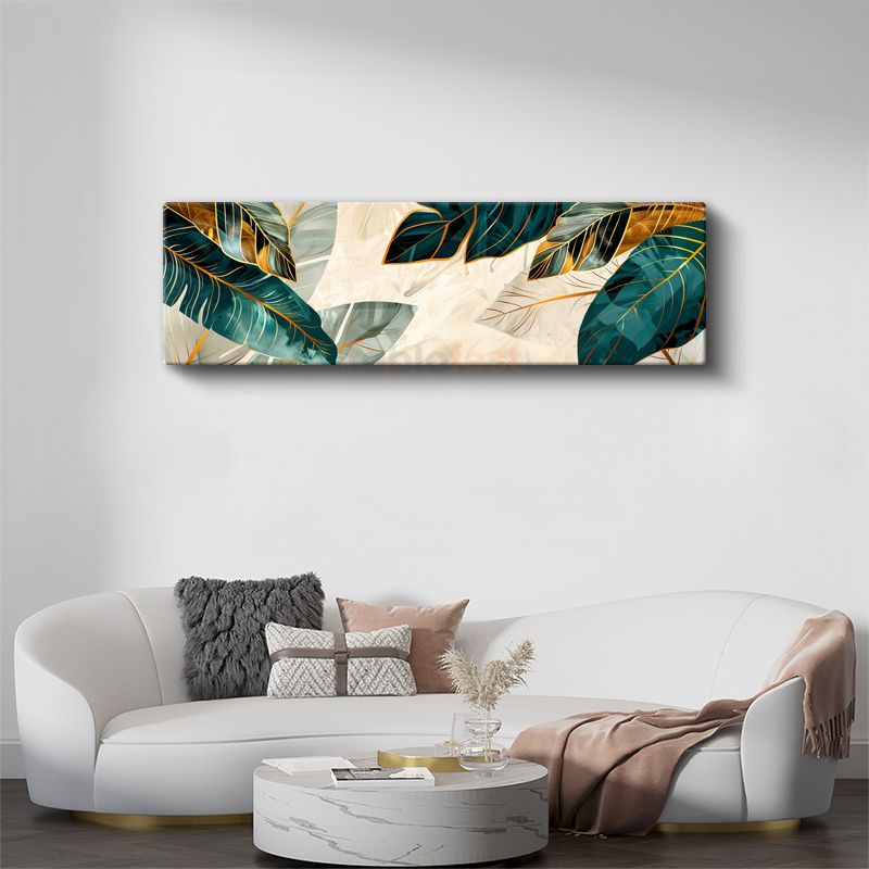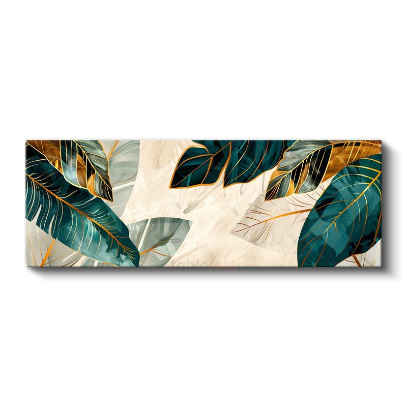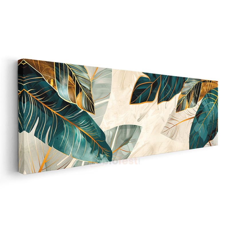 Tropikal Yapraklar - Turkuaz ve Altın Detaylı Modern Tasarım Kanvas Tablo