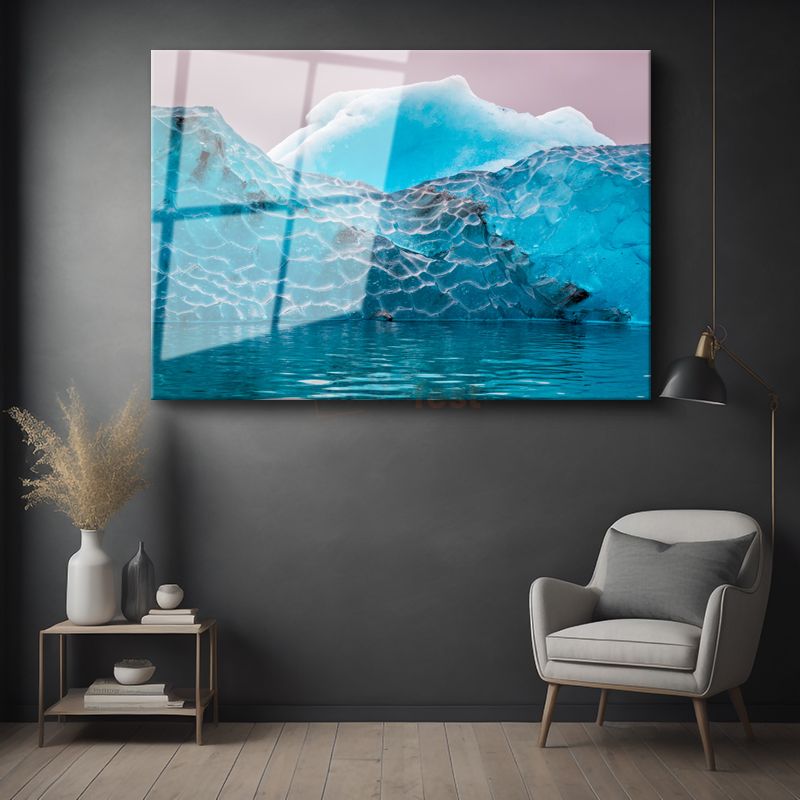 Turkuaz Buzul - Kristal Parlaklığında Kutup Manzarası Cam Tablo