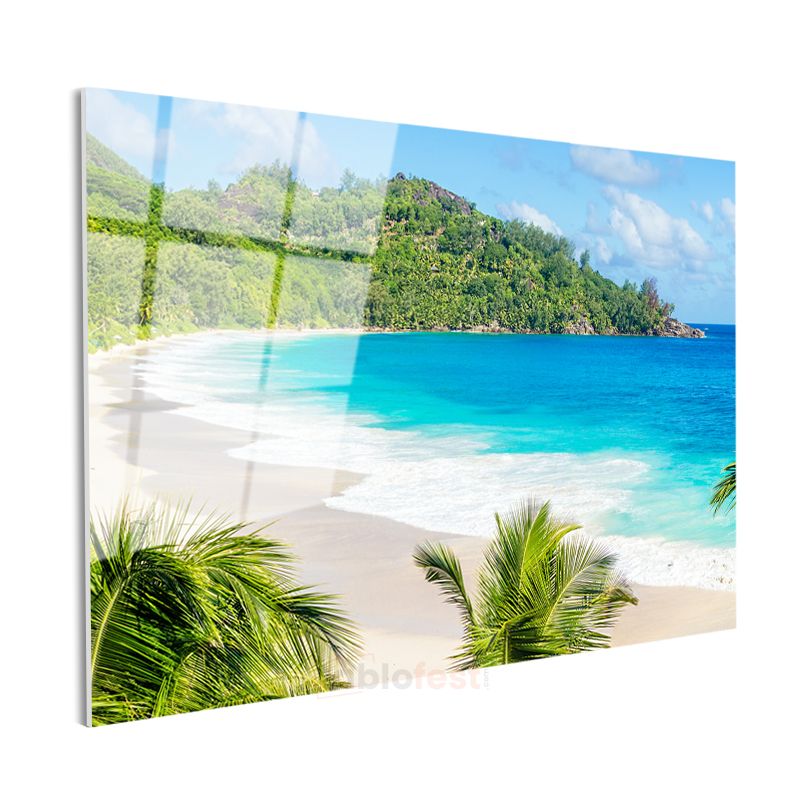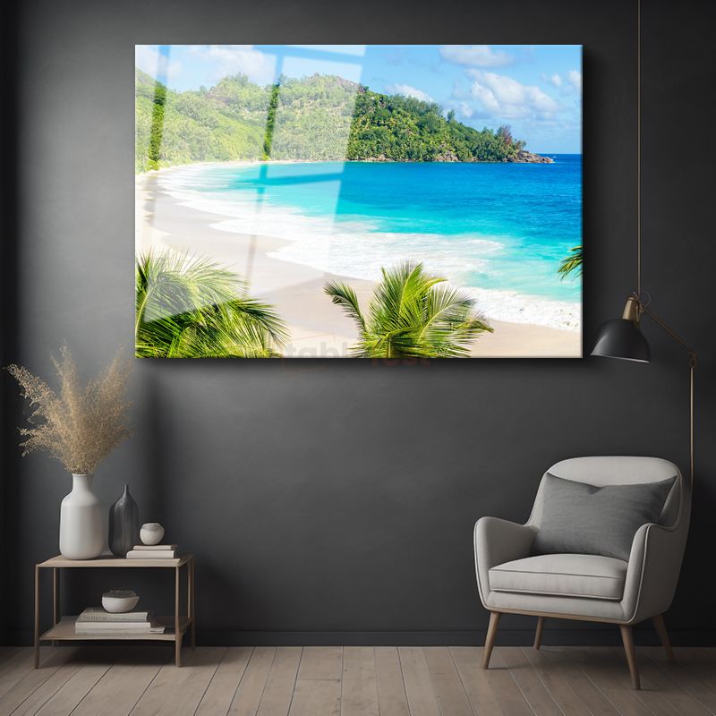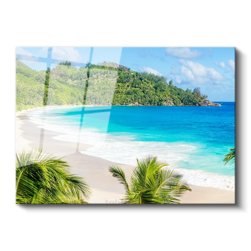 Turkuaz Cennet - Beyaz Kumsallı Tropik Sahil Cam Tablo