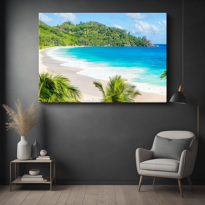 Turkuaz Cennet - Beyaz Kumsallı Tropik Sahil Kanvas Tablo