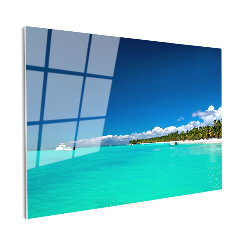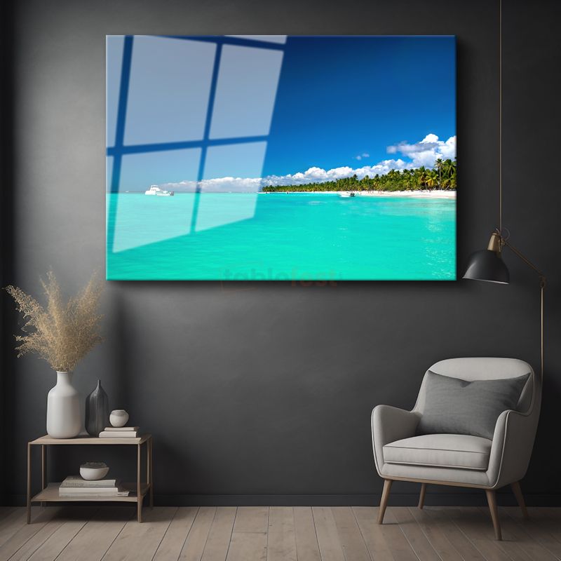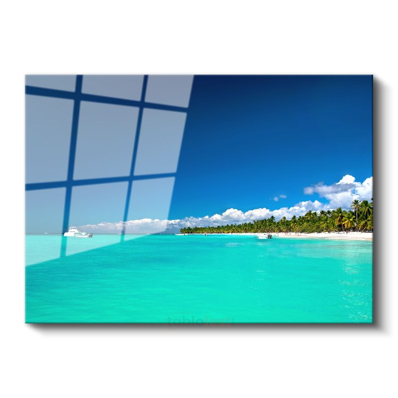 Turkuaz Cennet - Kristal Berraklığında Tropik Sahil Cam Tablo