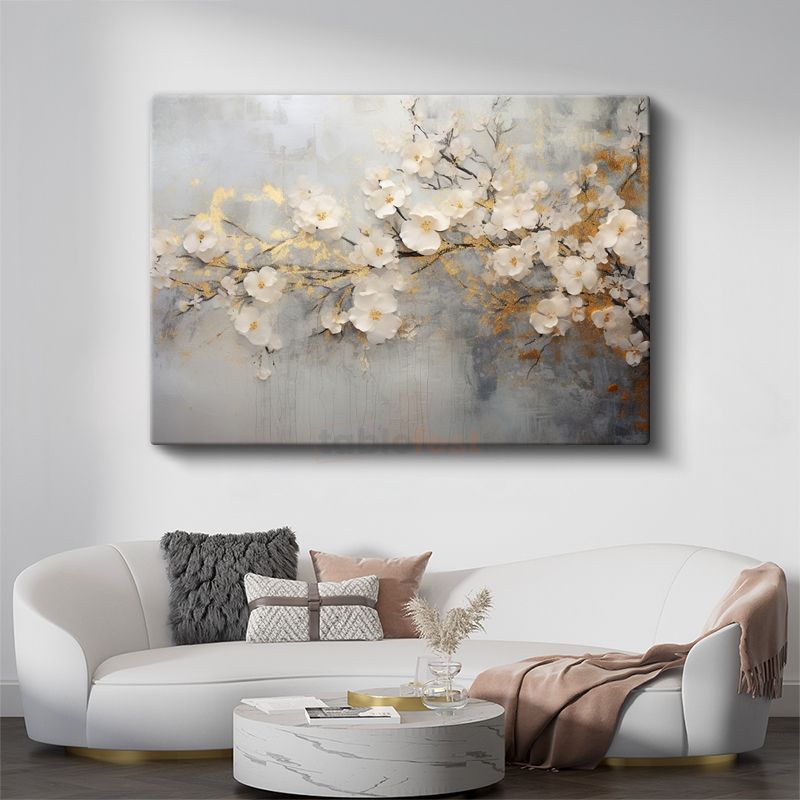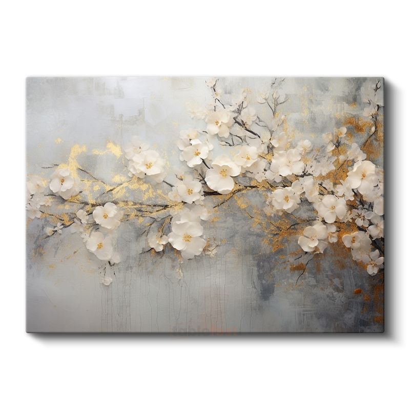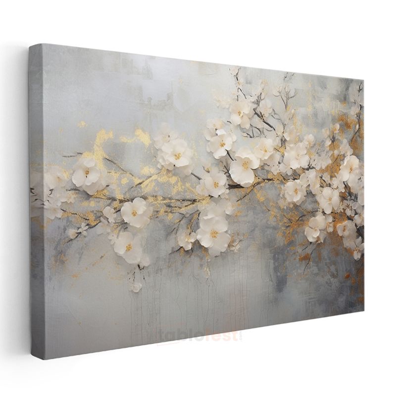 Turkuaz Çiçekler - Altın Detaylı Zarif Çiçek Dizilimi Kanvas Tablo