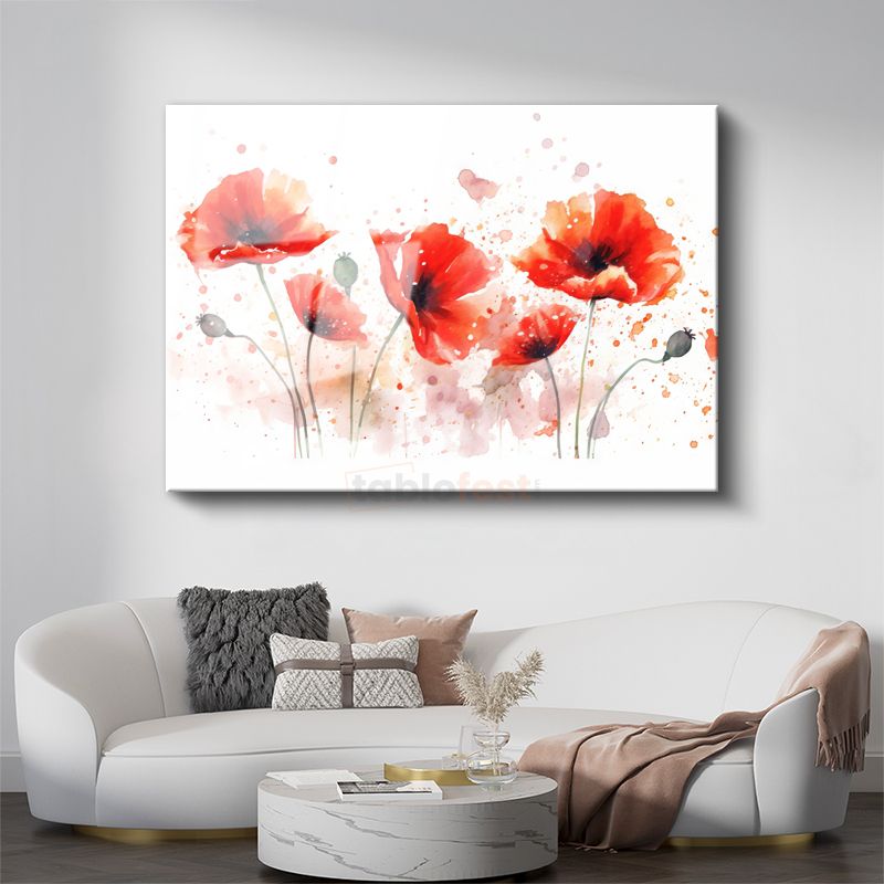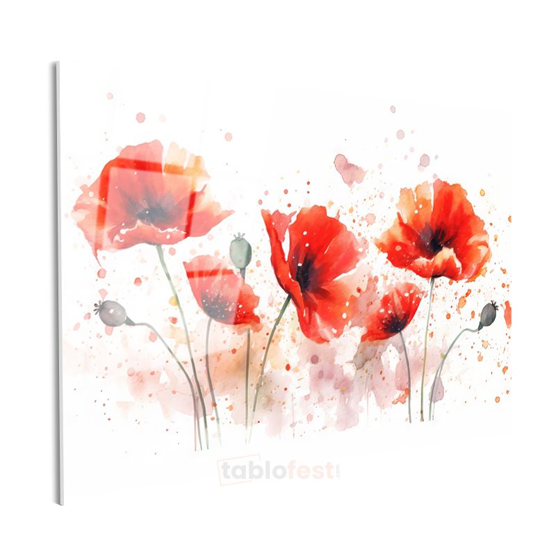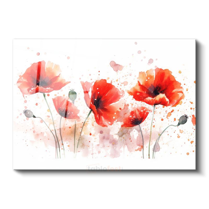 Turkuaz Çiçekler - Sulu Boya Esintisi Cam Tablo