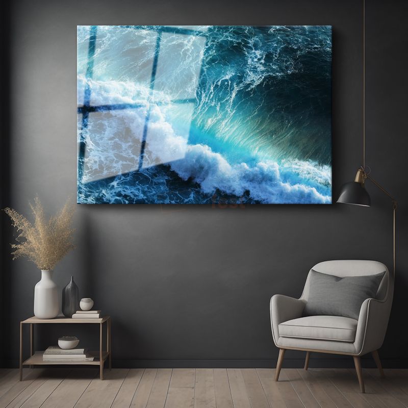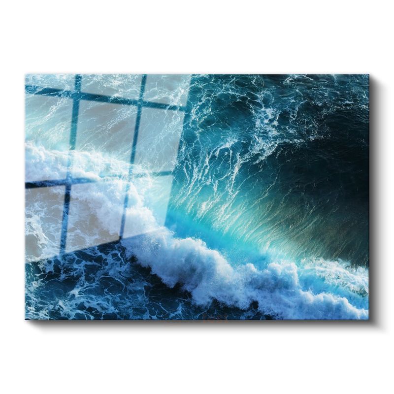 Turkuaz Dalga - Güçlü Okyanus Dalgası Dinamizmi Cam Tablo