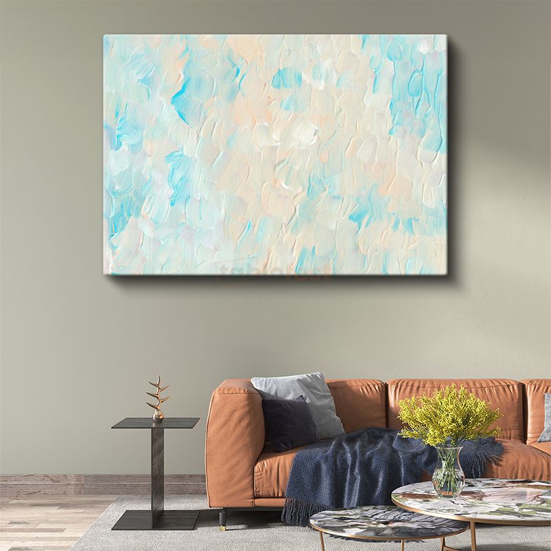 Turkuaz Dalgalar - Dokulu Fırça Darbeleri Kanvas Tablo