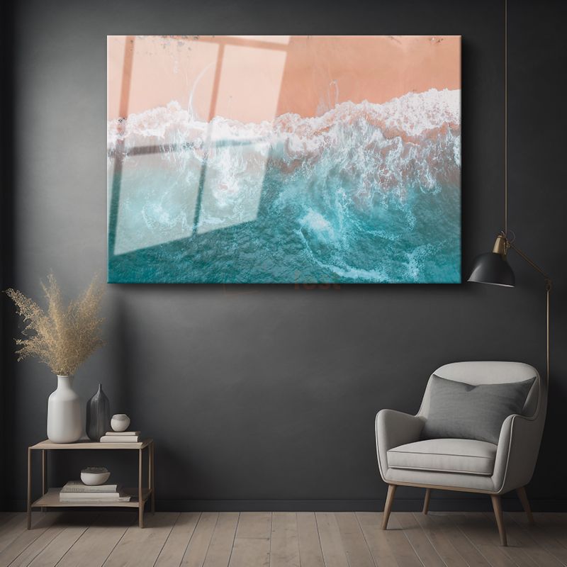 Turkuaz Dalgalar - Huzur Veren Okyanus Manzarası Cam Tablo