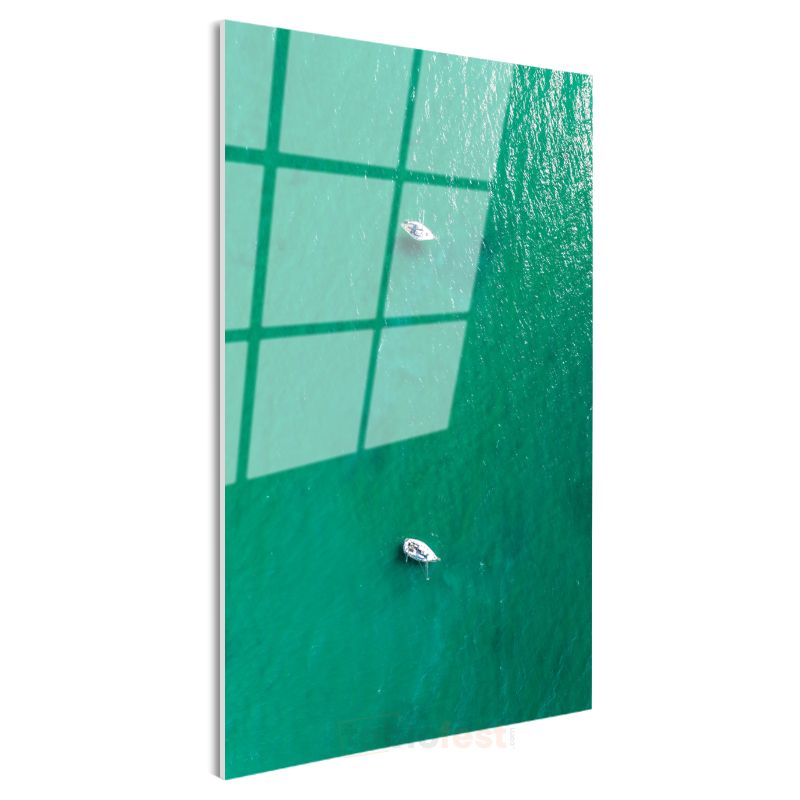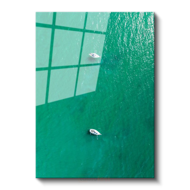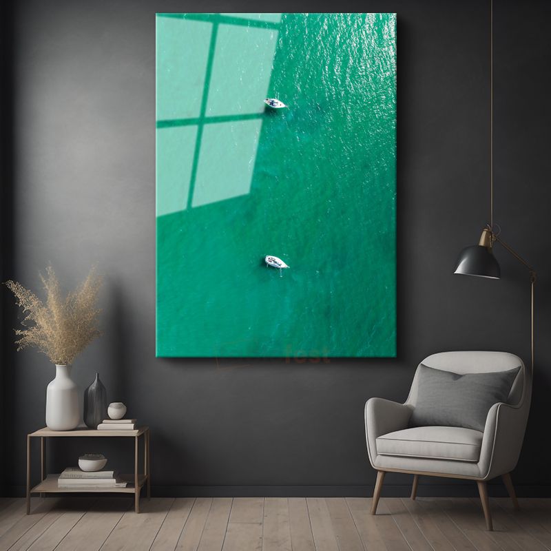 Turkuaz Deniz - Berrak Sularda Yüzen Tekneler Cam Tablo