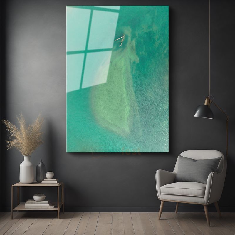 Turkuaz Deniz - Huzurlu Yüzücü Cam Tablo