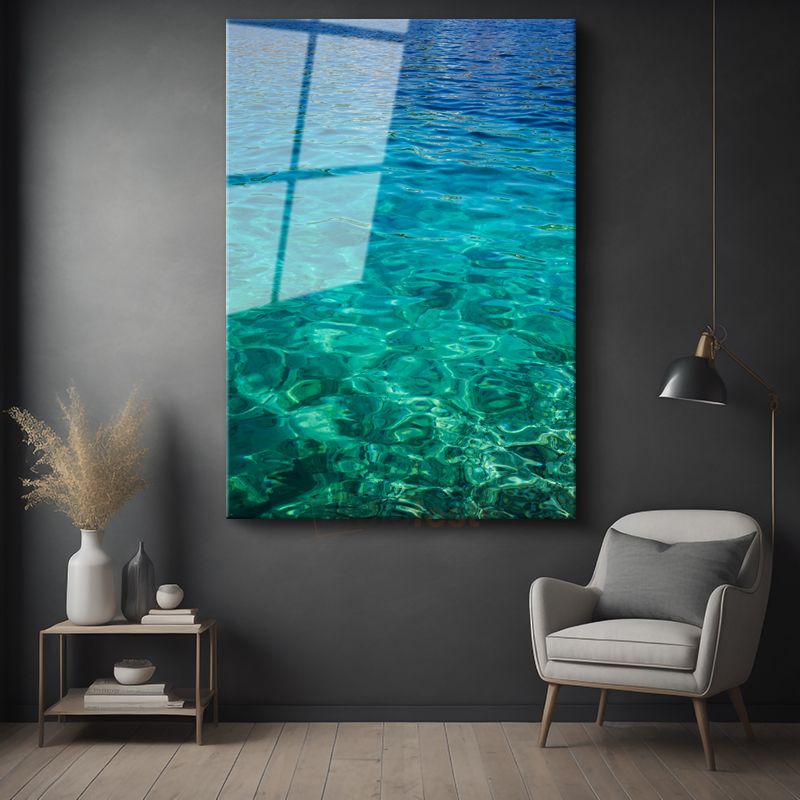 Turkuaz Deniz - Kristal Berraklığında Dalgalar Cam Tablo
