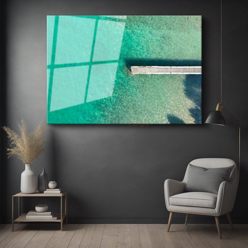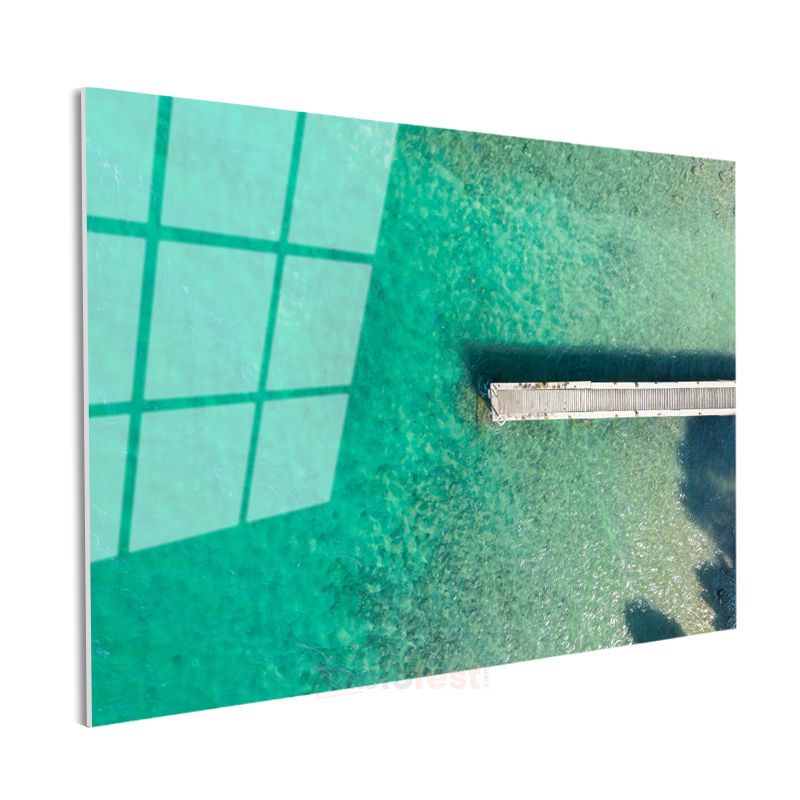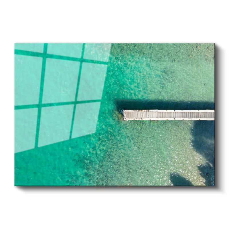 Turkuaz Deniz - Kristal Berraklığında İskele Manzarası Cam Tablo