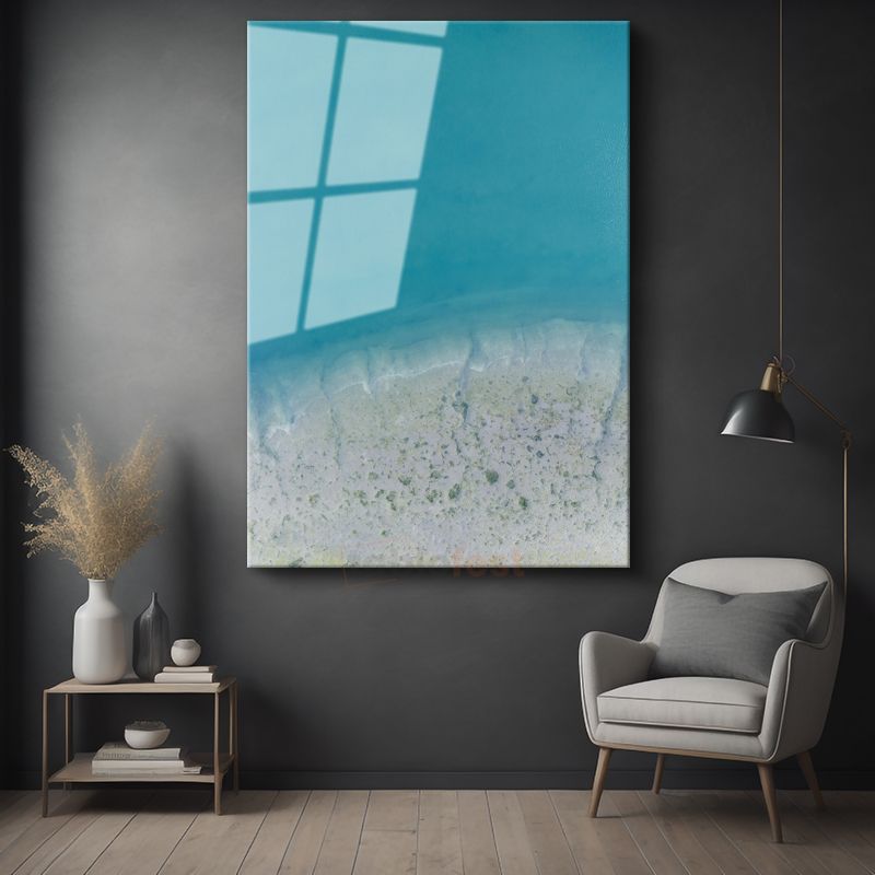 Turkuaz Deniz - Kristal Berraklığında Sahil Cam Tablo