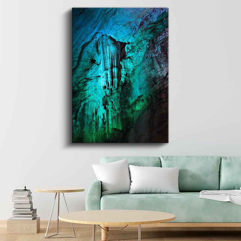 Turkuaz Derinlik - Mistik Mağara Formları Soyut Kanvas Tablo