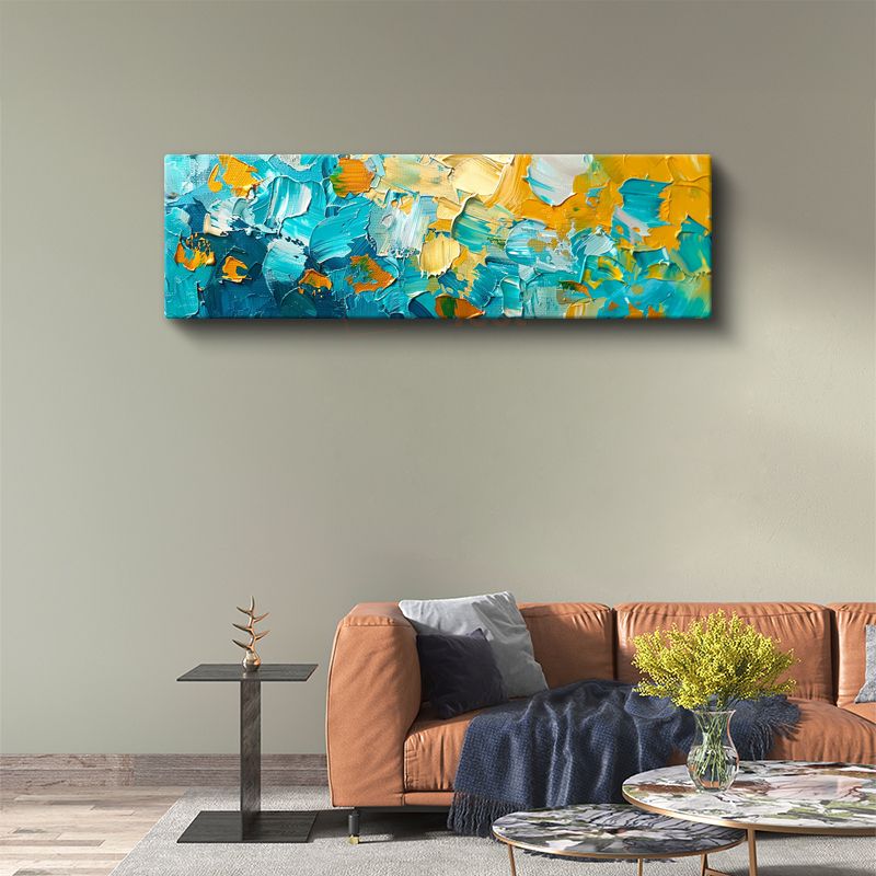 Turkuaz Doku - Sarı Aksan Detaylı Ekspresyonist Kanvas Tablo
