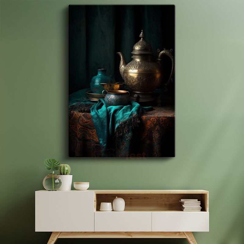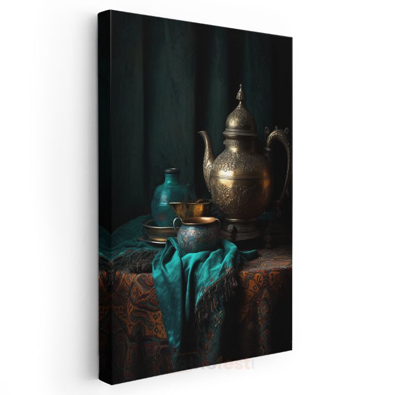 Turkuaz Dokunuş - Geleneksel Çay Ritüeli Kanvas Tablo