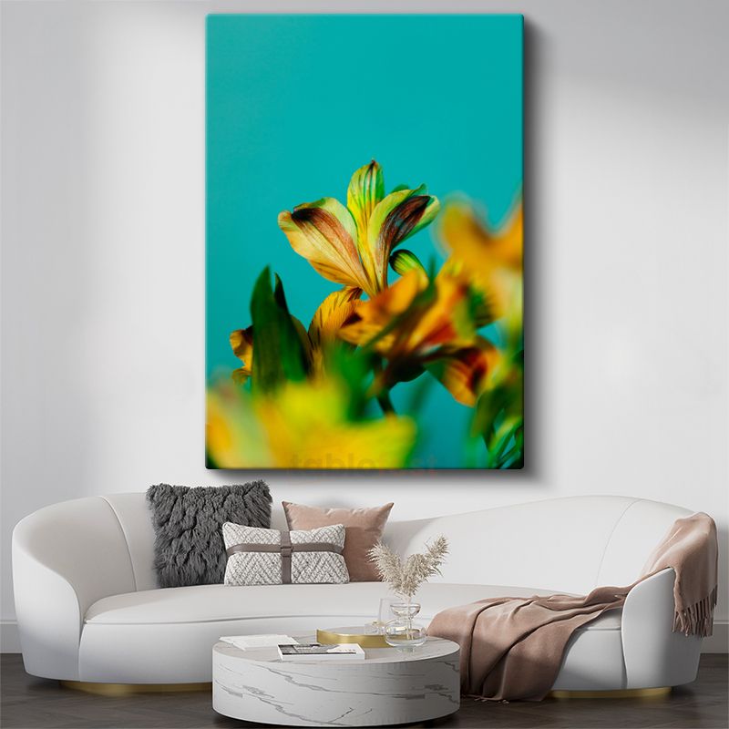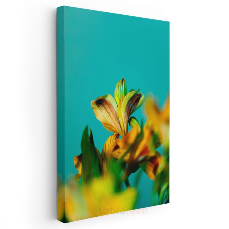 Turkuaz Gökyüzü Zambakları - Canlı Sarı Çiçek Kanvas Tablo