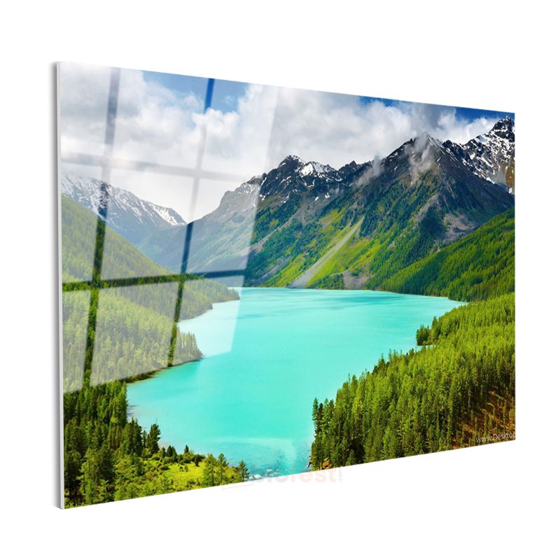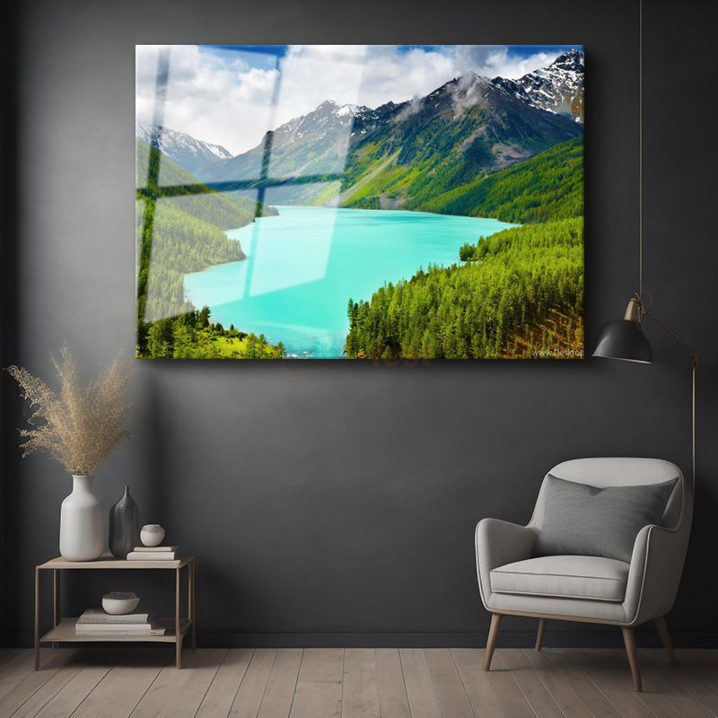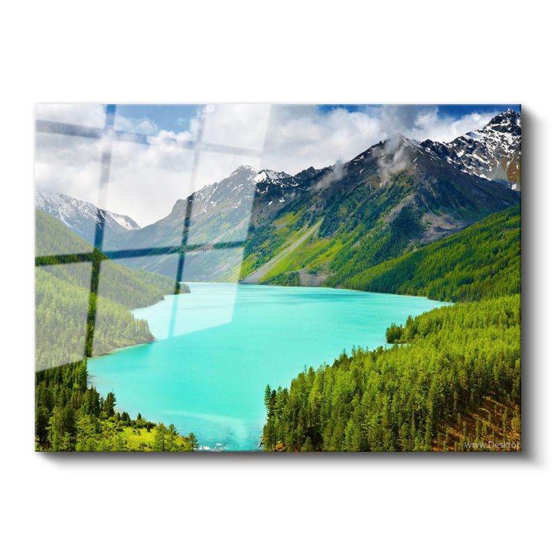 Turkuaz Göl - Karlı Dağlar Arasında Cam Tablo