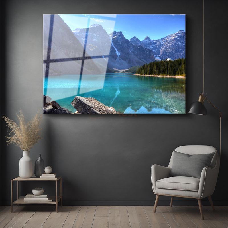 Turkuaz Göl - Karlı Dağların Arasında Saklı Cennet Cam Tablo
