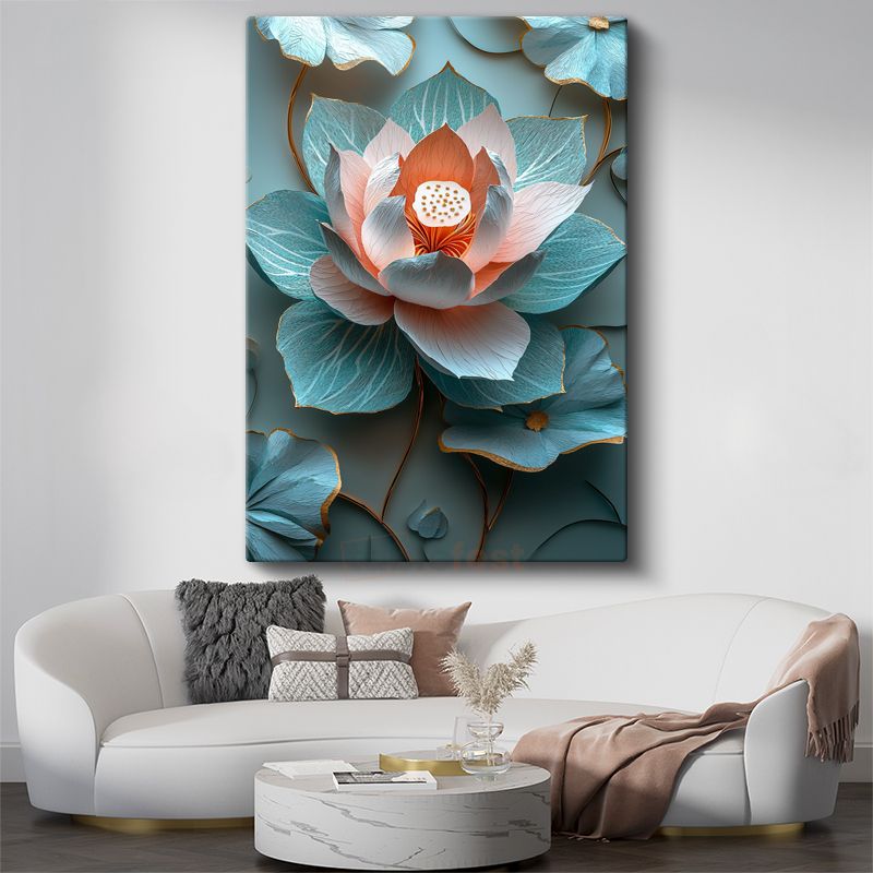 Turkuaz Lotus - Egzotik Mavi Nilüfer Çiçeği Kanvas Tablo