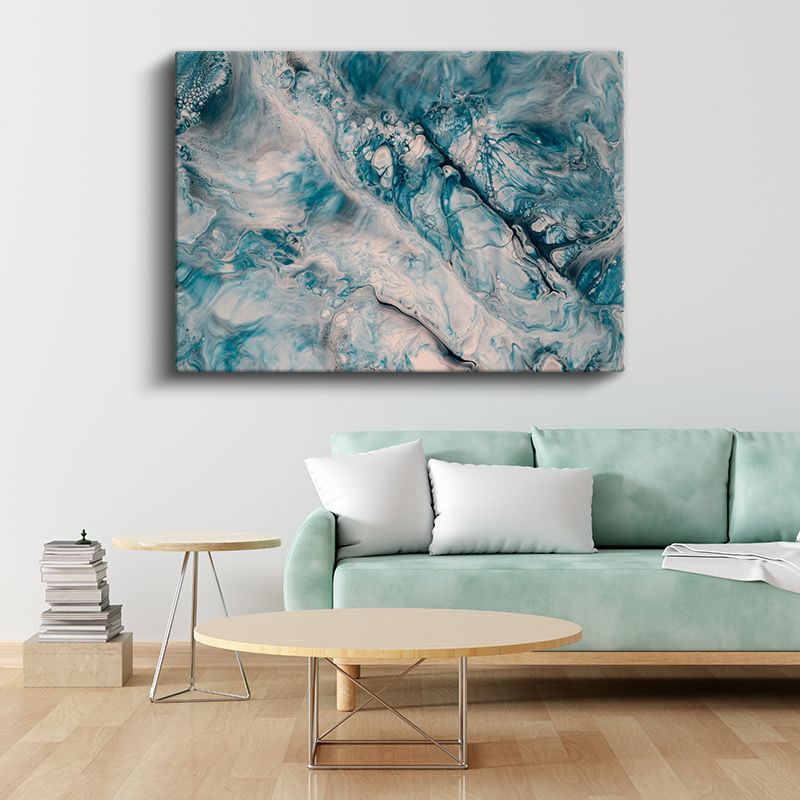 Turkuaz Mermer - Akışkan Desenler Soyut Kanvas Tablo