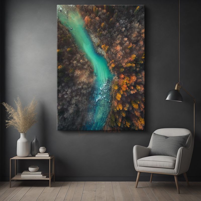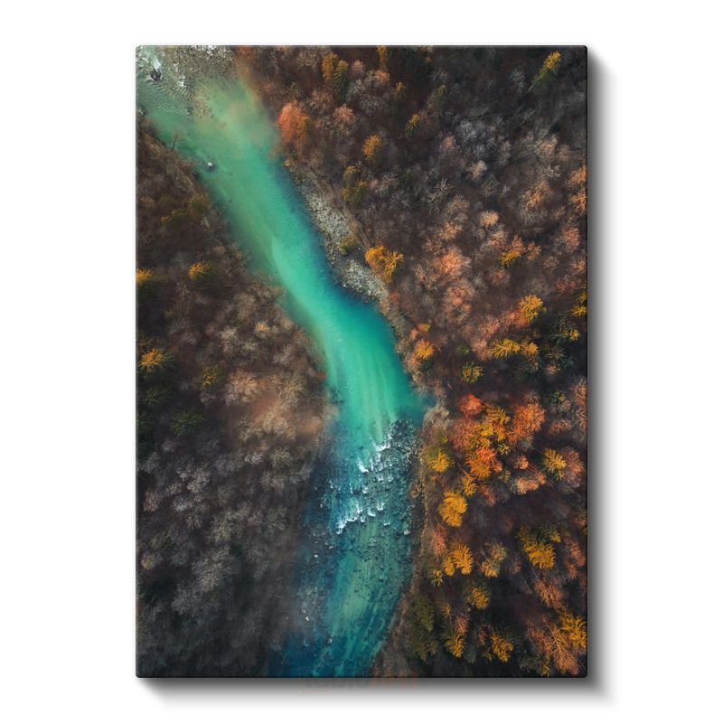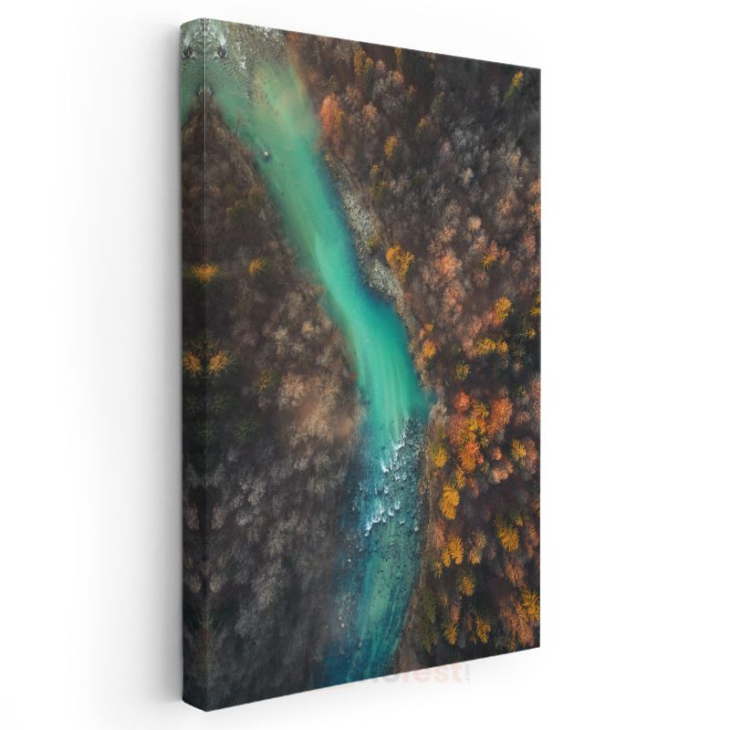 Turkuaz Nehir - Sonbahar Ormanları Arasında Akan Büyüleyici Su Yolu Kanvas Tablo