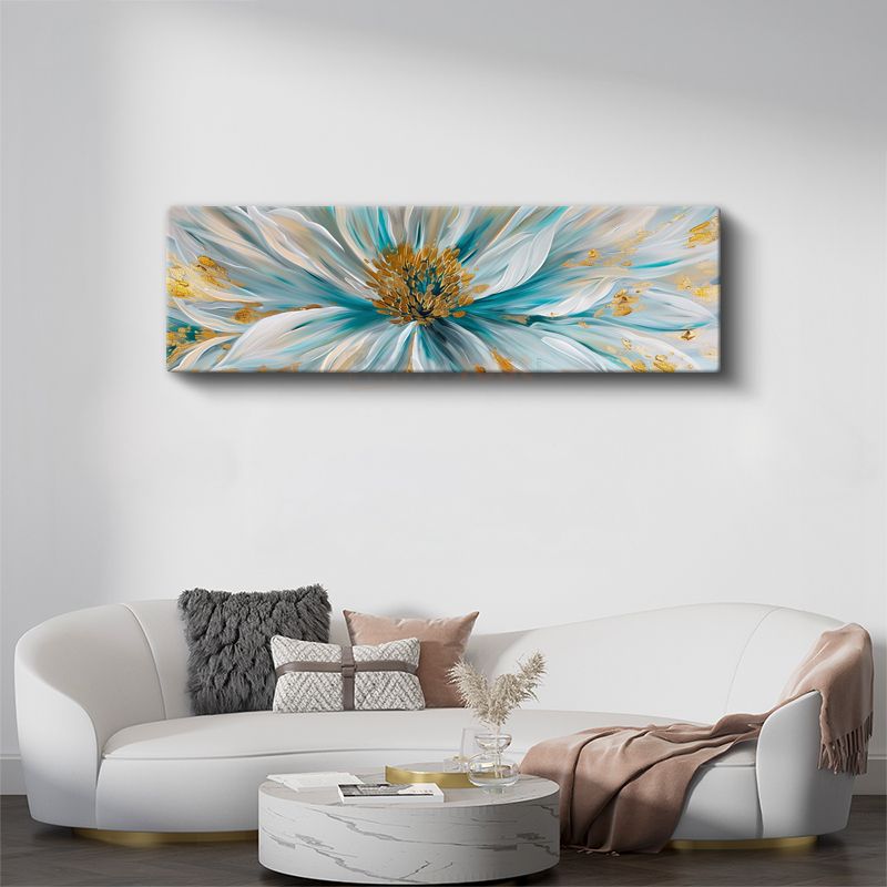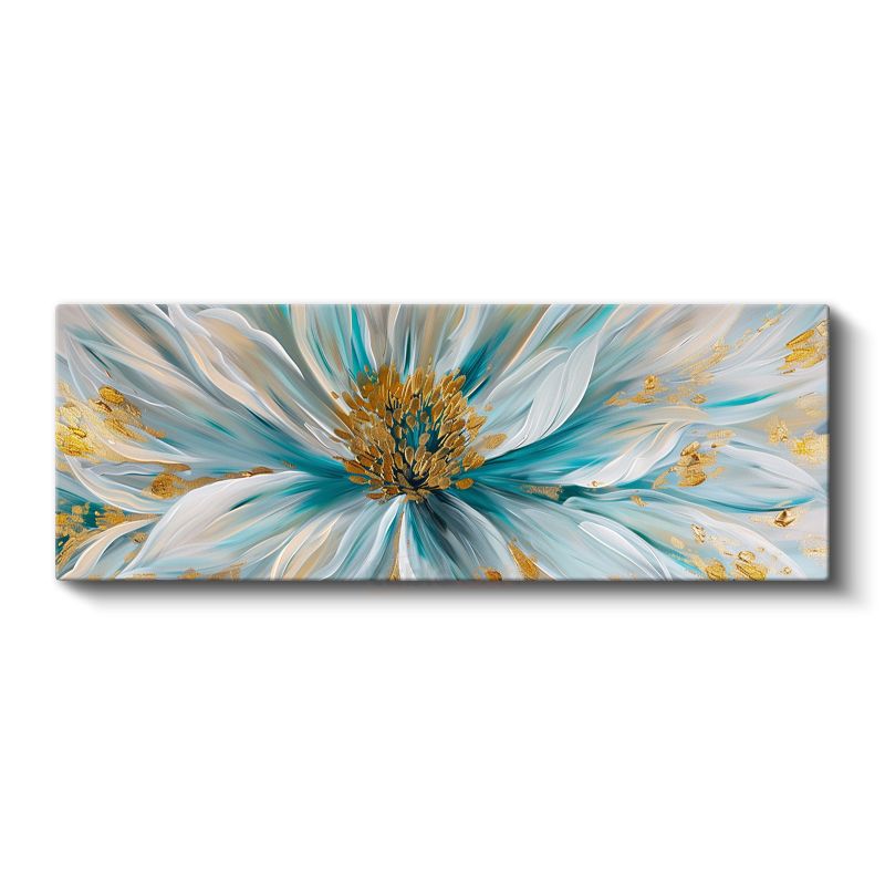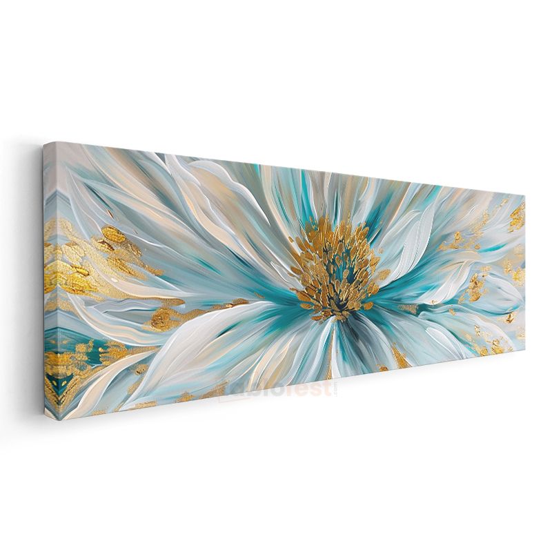 Turkuaz Papatya - Altın Detaylı Modern Çiçek Tasarımı Kanvas Tablo