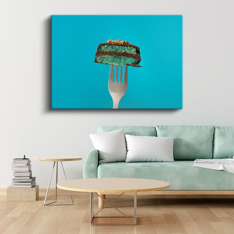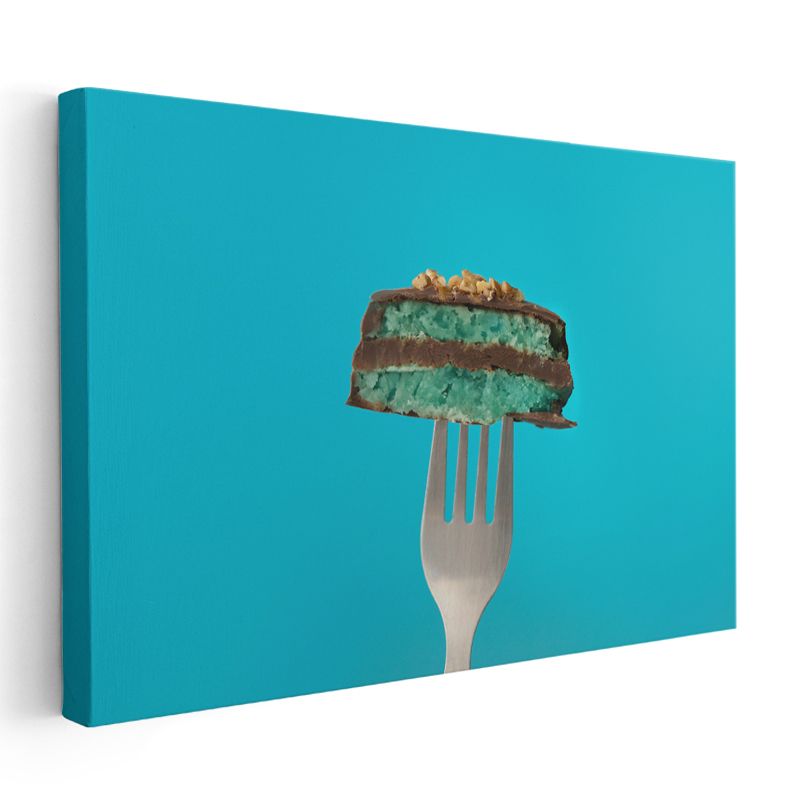 Turkuaz Pasta - Renkli Tatlı Sunumu Kanvas Tablo
