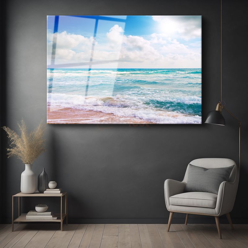 Turkuaz Sahil - Dalgaların Dansı Cam Tablo