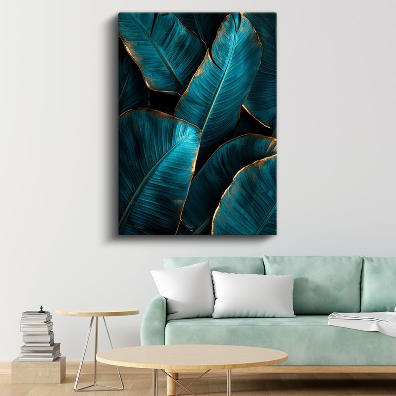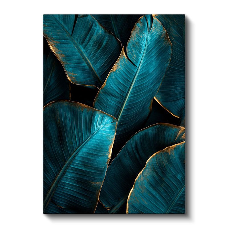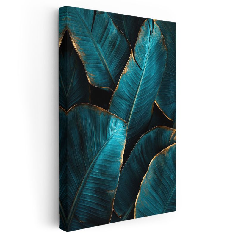 Turkuaz Yapraklar - Altın Detaylı Tropikal Bitki Kanvas Tablo