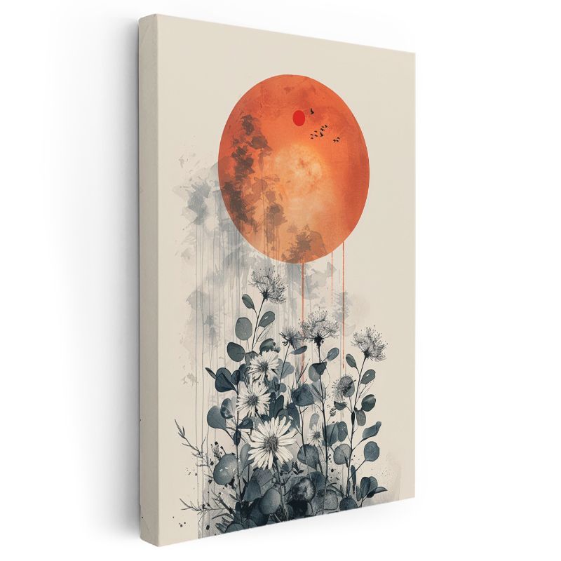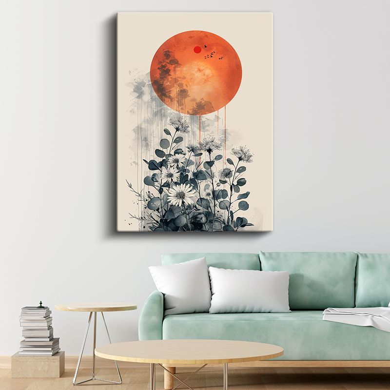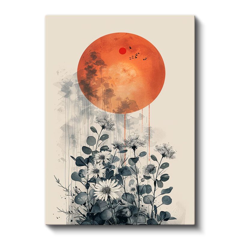 Turuncu Ay Papatyalar - Soyut Doğa Manzarası Kanvas Tablo