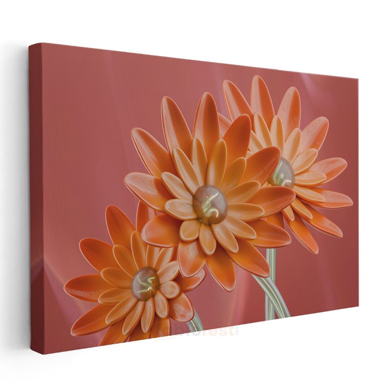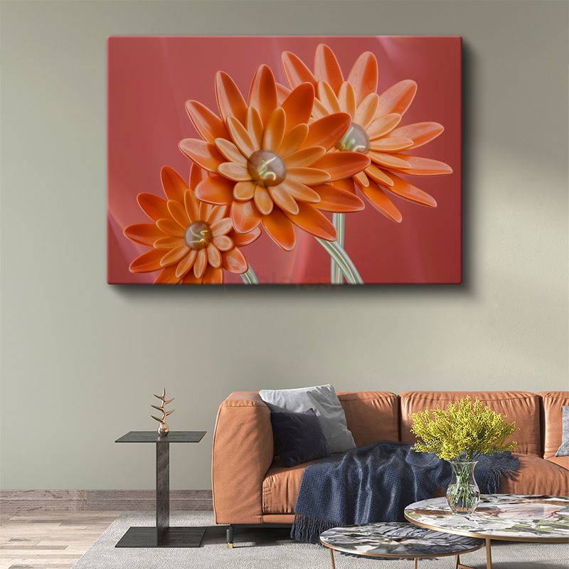 Turuncu Çiçekler - Stilize Geometrik Formlar Kanvas Tablo