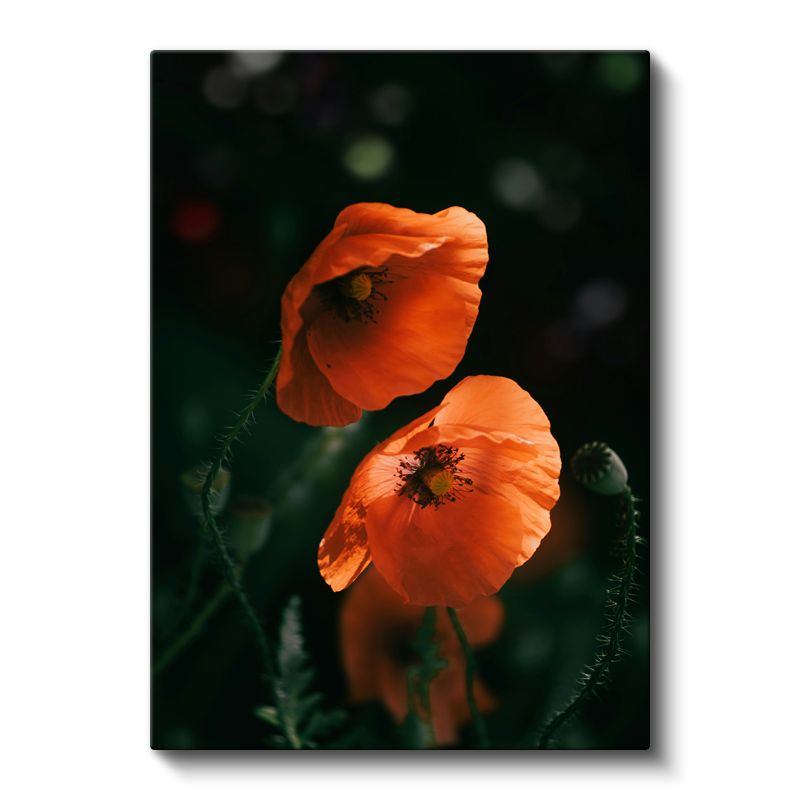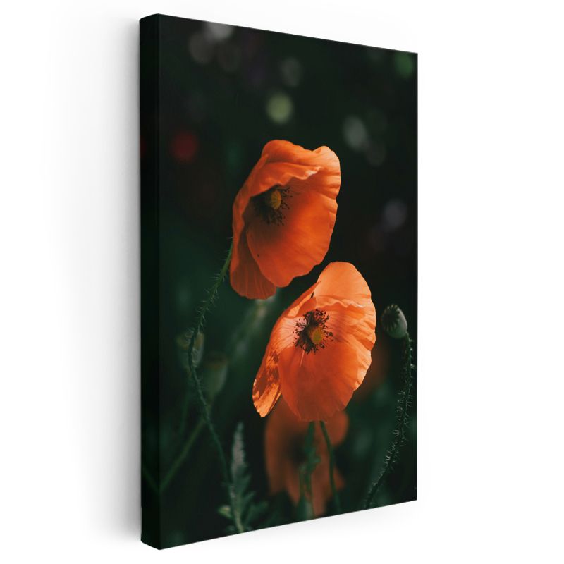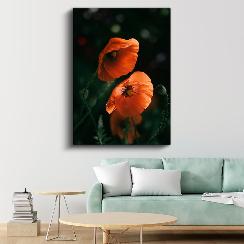 Turuncu Gelincikler - Koyu Zeminde Parlak Haşhaş Çiçekleri Kanvas Tablo