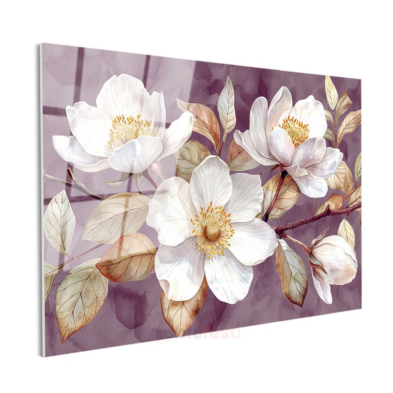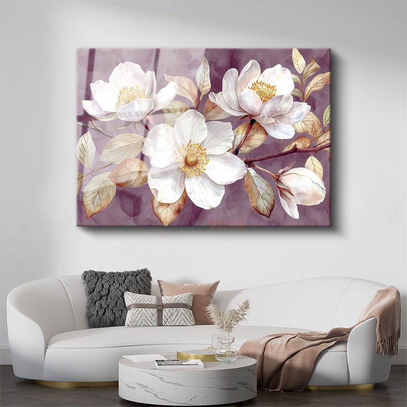 Turuncu Gelincikler - Mavi Fonda Canlı Çiçek Tarlası Cam Tablo