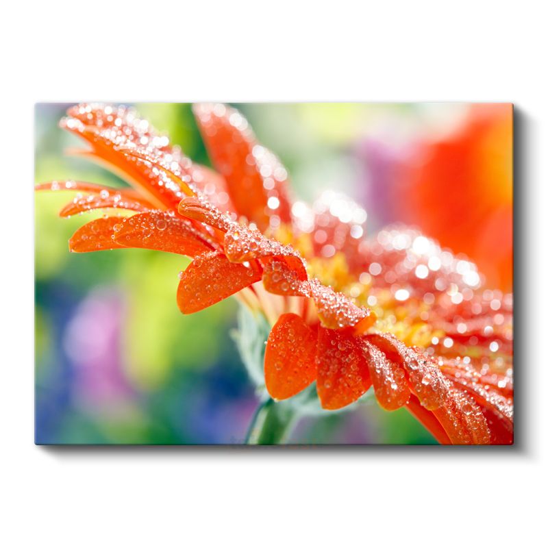Turuncu Gerbera - Çiy Damlacıklı Çiçek Detayı Kanvas Tablo