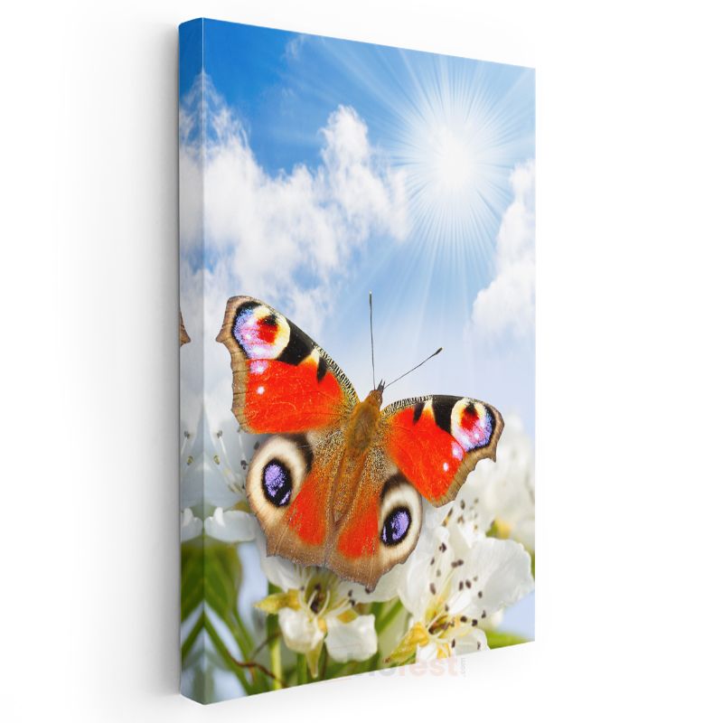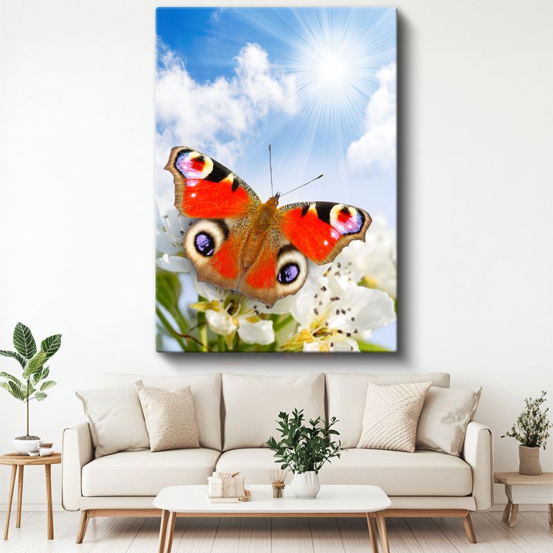 Turuncu Kelebek - Çiçek Üstünde Narin Kanatlar Kanvas Tablo