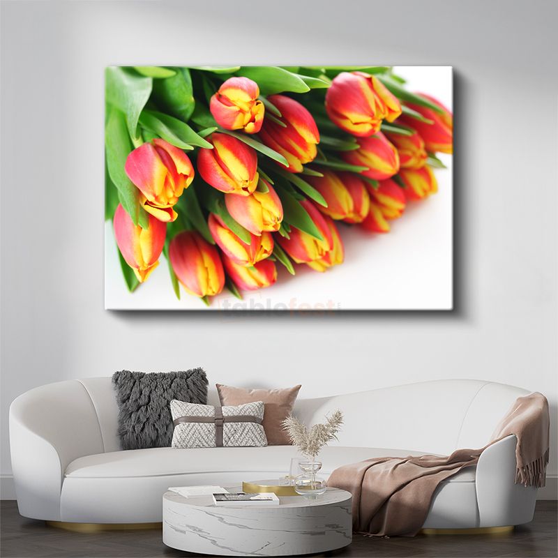 Turuncu Laleler - Canlı Renkli Zarif Buket Kanvas Tablo