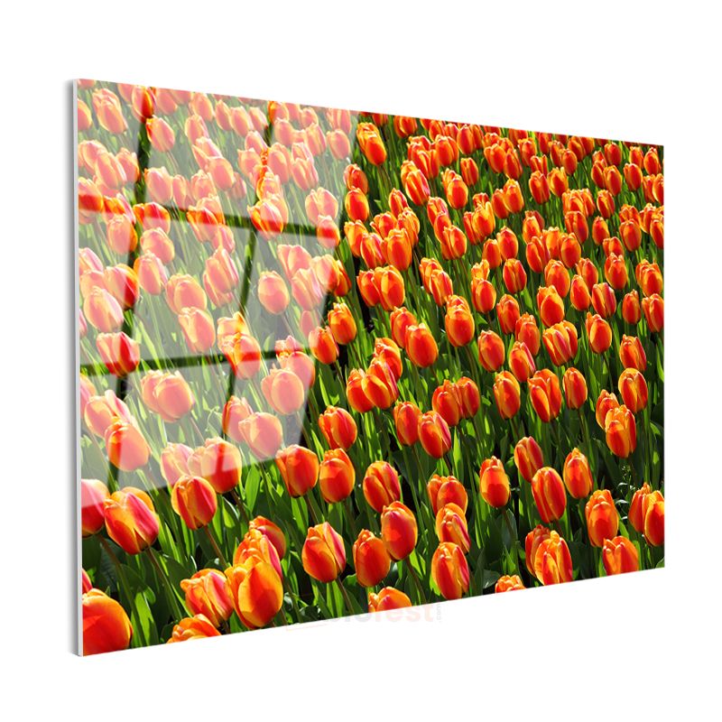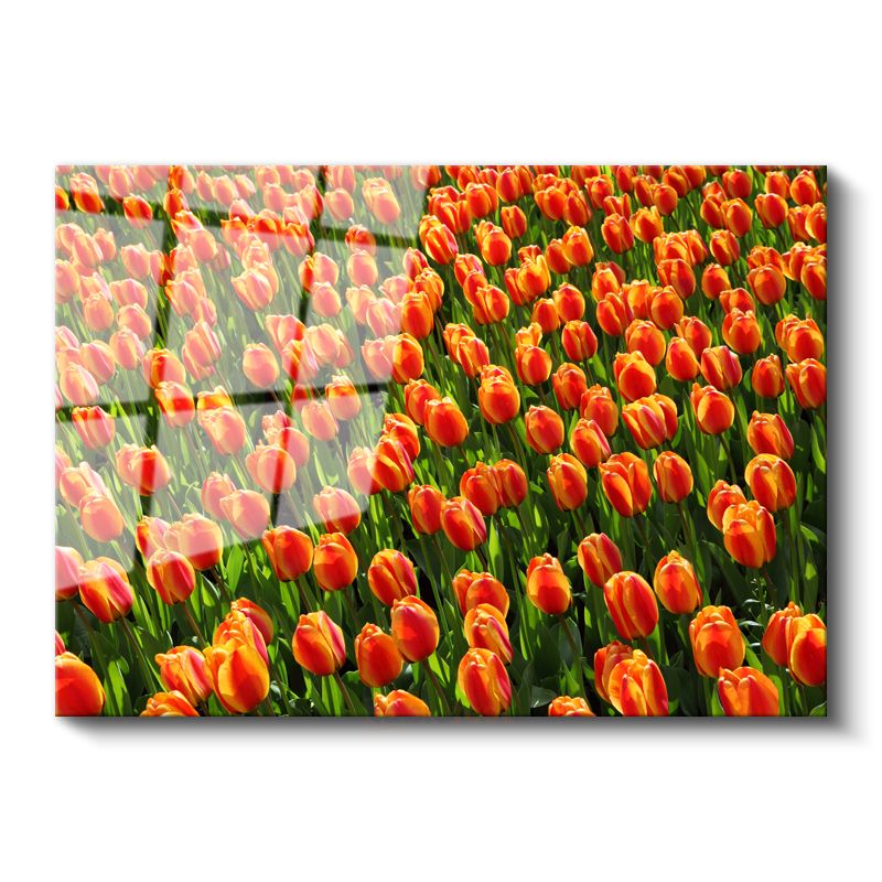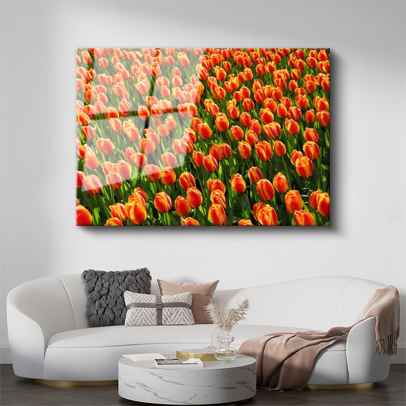 Turuncu Laleler - Güneş Işığında Parlayan Çiçek Tarlası Cam Tablo