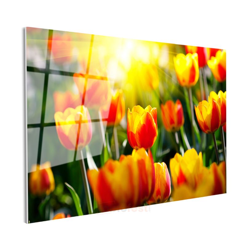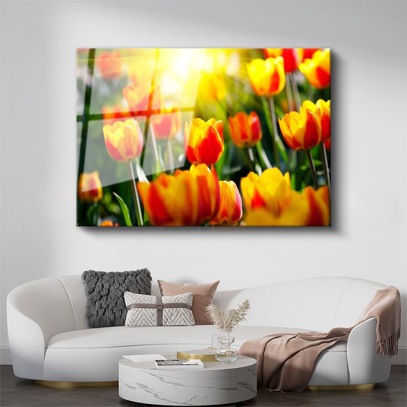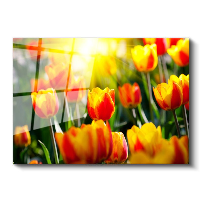 Turuncu Laleler - Güneş Işığında Parlayan Çiçekler Cam Tablo
