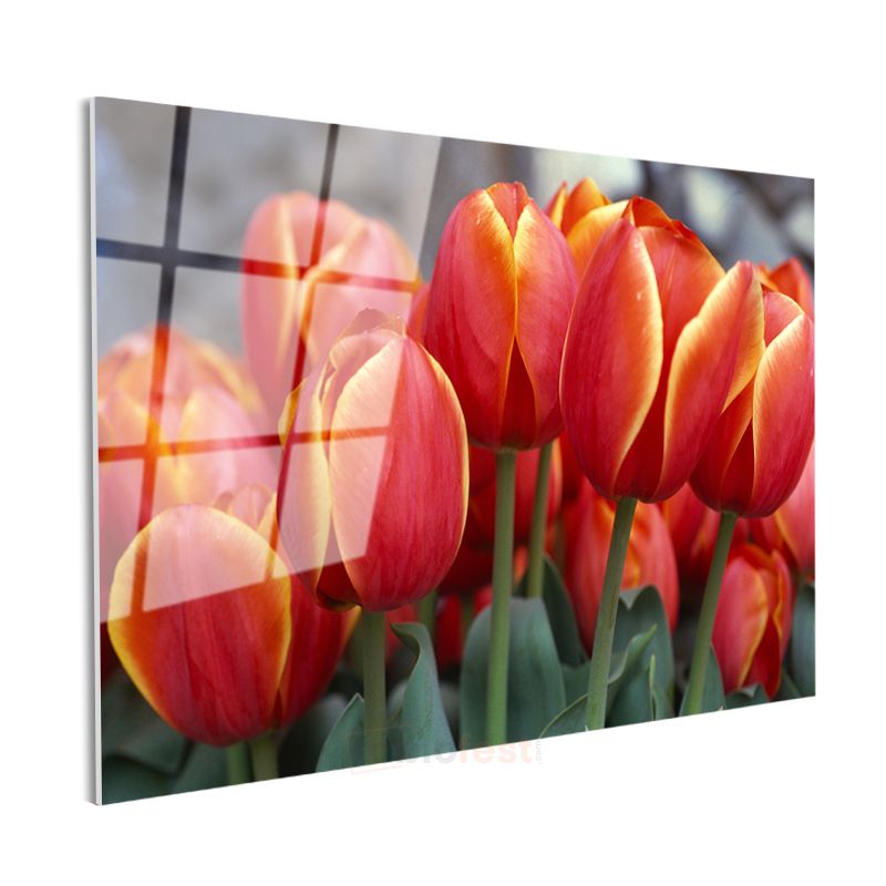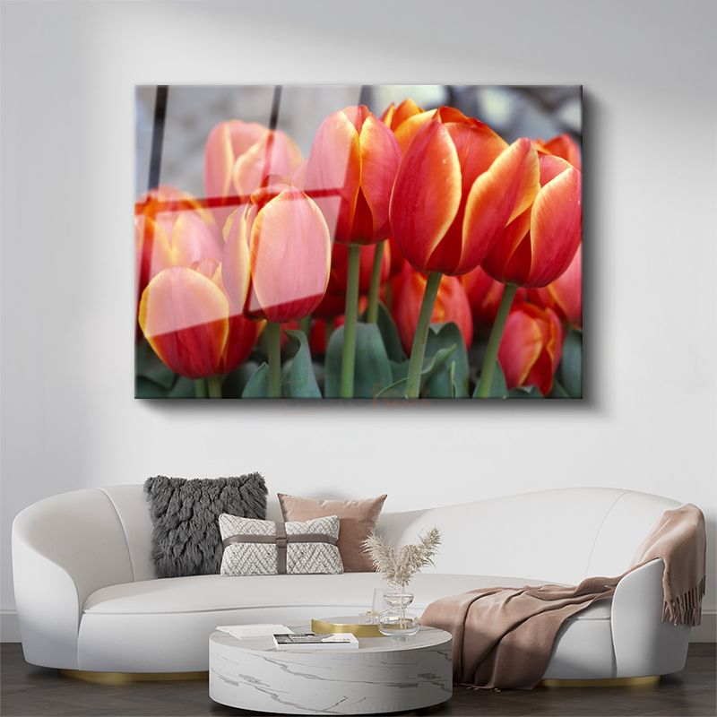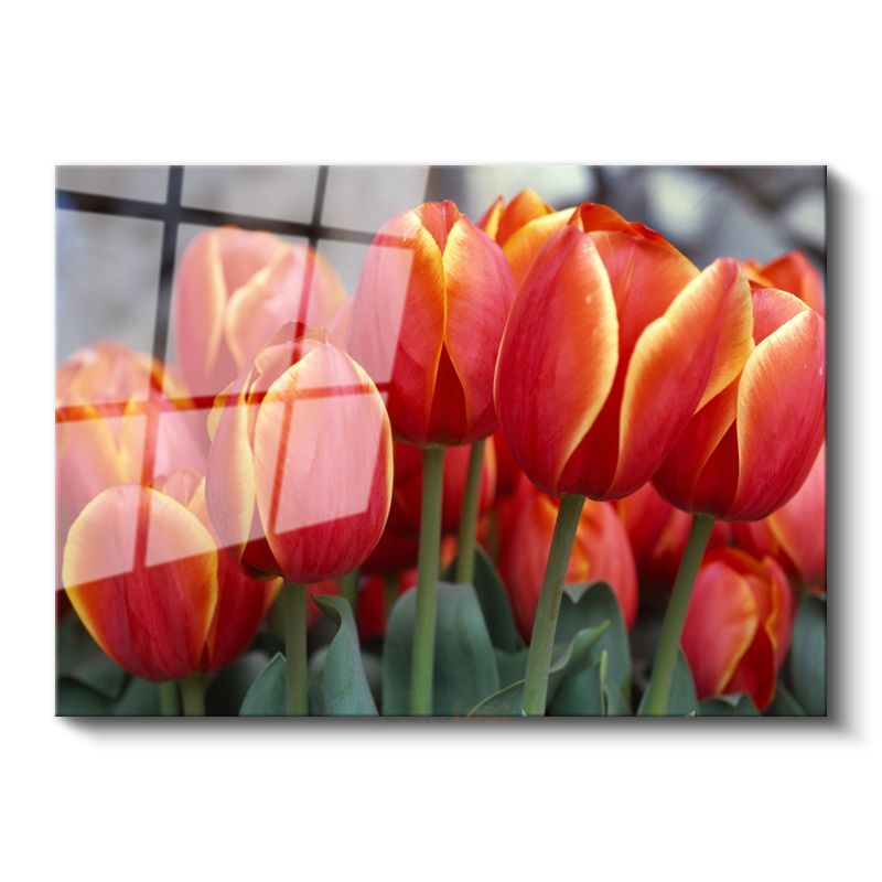 Turuncu Laleler - Zarif Yapraklı Bahar Çiçekleri Cam Tablo
