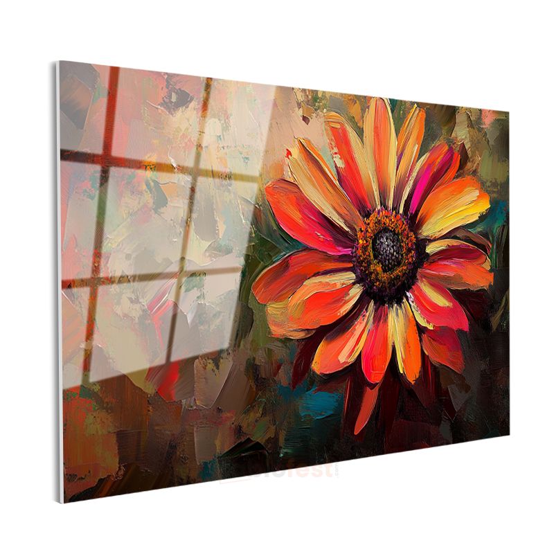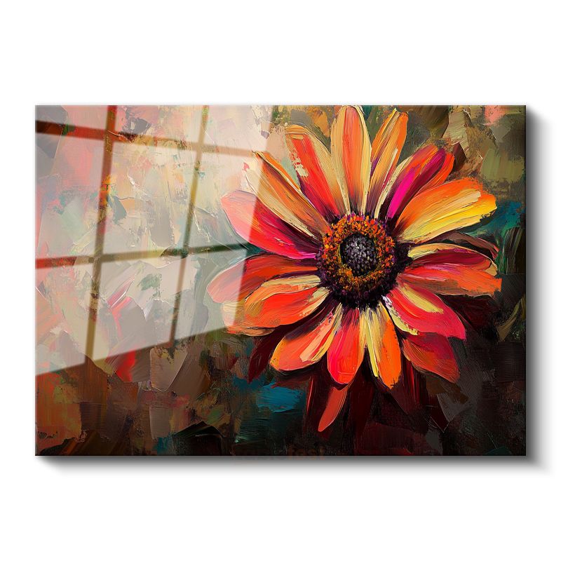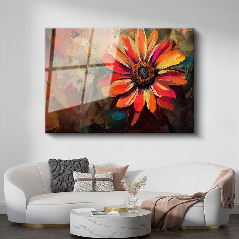 Turuncu Papatya - Yağlı Boya Teknikli Sanat Cam Tablo