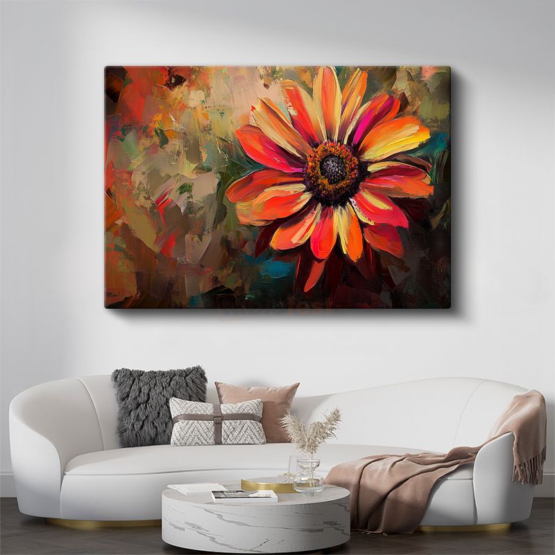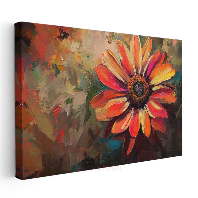 Turuncu Papatya - Yağlı Boya Teknikli Sanat Kanvas Tablo
