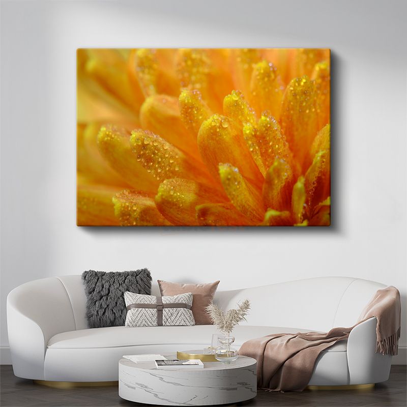 Turuncu Polen - Çiy Damlacıklı Makro Çiçek Detayı Kanvas Tablo