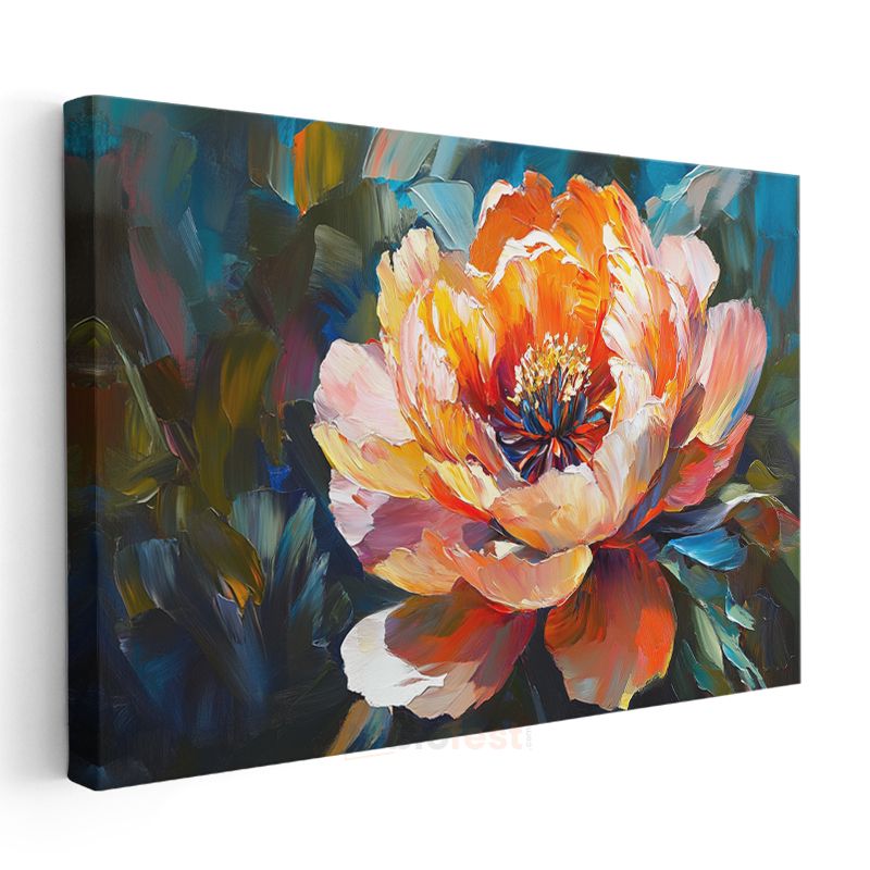 Turuncu Şakayık - Yağlı Boya Tekniğiyle Çiçek Portresi Kanvas Tablo