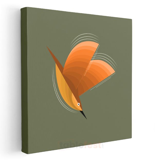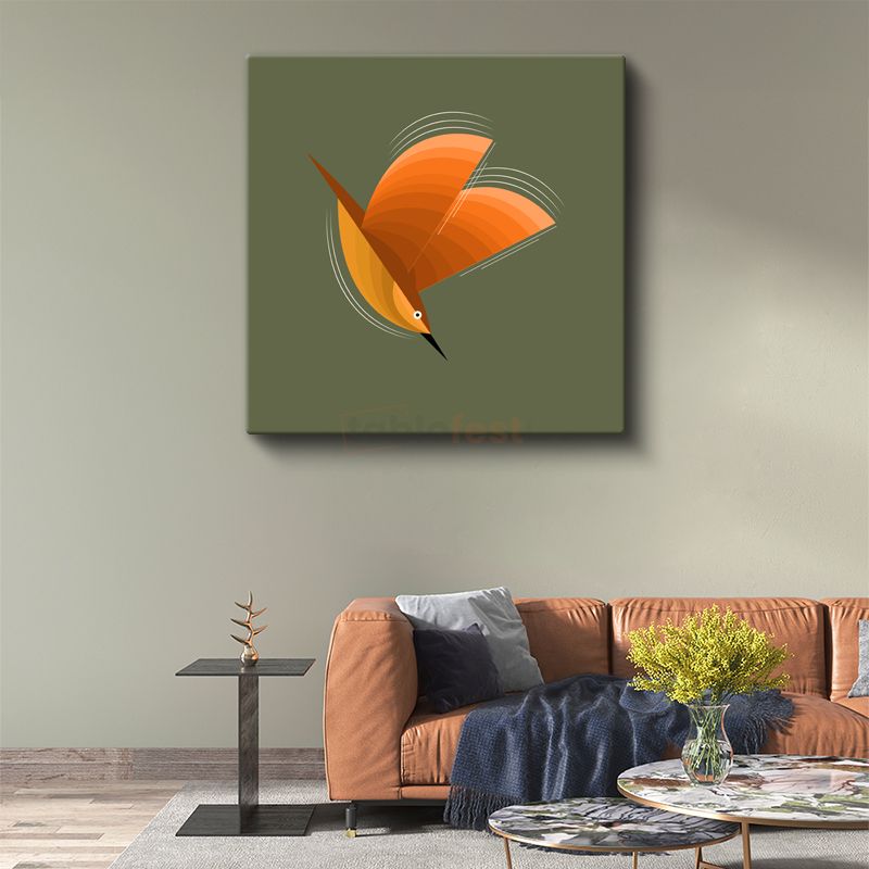 Turuncu Sinek Kuşu - Canlı Renkli Geometrik Tasarım Kanvas Tablo